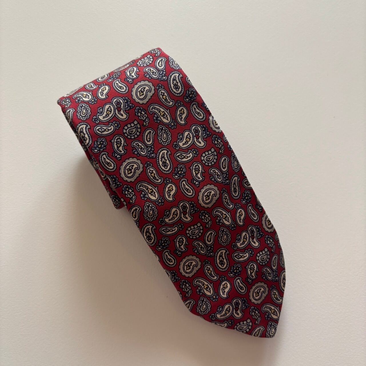 白ベースのシンプルな色味のペイズリーなので幅広く使ってもらえる一本かと。